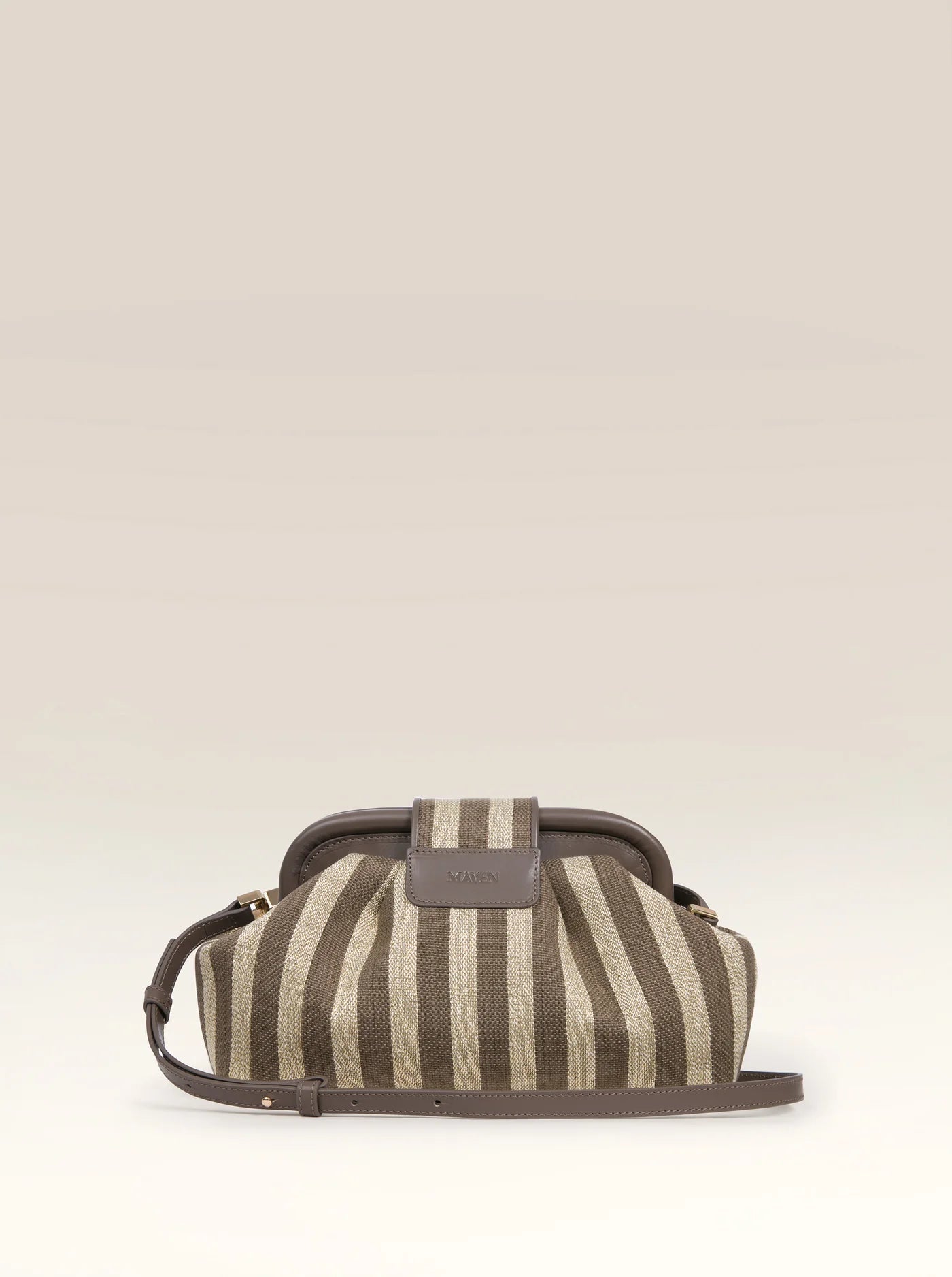 The clutch combines artisanal craftsmanship with everyday functionality. Handwoven and handmade from premium canvas with a soft leather lining, this compact bag features a removable leather strap for versatile carrying options. A zippered interior pocket keeps essentials secure.
