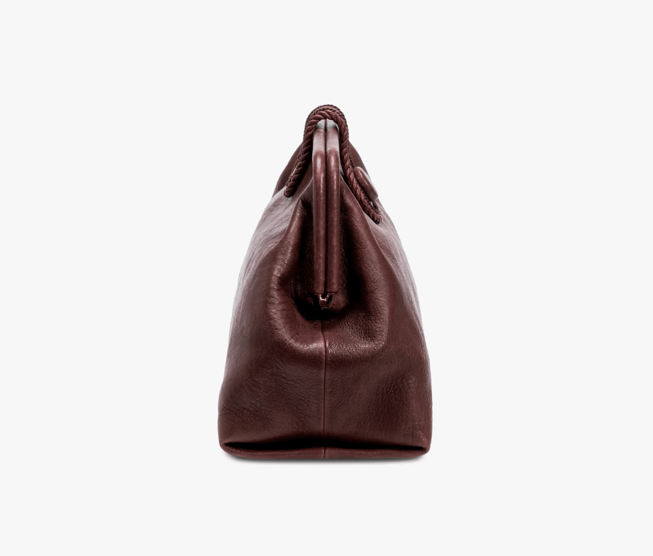 Crafted from supple burgundy leather, the Hedera Large Pouch brings a sculptural piece to everyday essentials. Its softly structured silhouette offers ease and flexibility. Signature twisted leather detailing and the refined front closure add depth and texture to the design. Completed with a magnetic closure, it balances relaxed form with understated craftsmanship—an effortless companion from day to evening.
