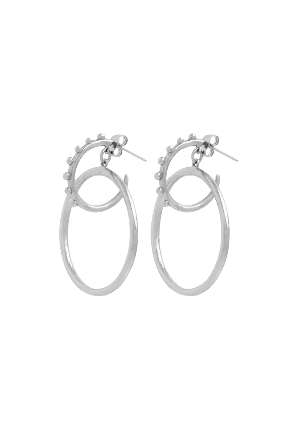 The DOUBLE earring is an accessory that will turn heads and make you the center of attention. Designed with a modern, minimalist touch, this bold and daring piece of jewelry effortlessly elevates your style game to new heights. With two interlocking hoops on each earring, the DOUBLE earring showcases a unique and edgy aesthetic that sets it apart from the ordinary.