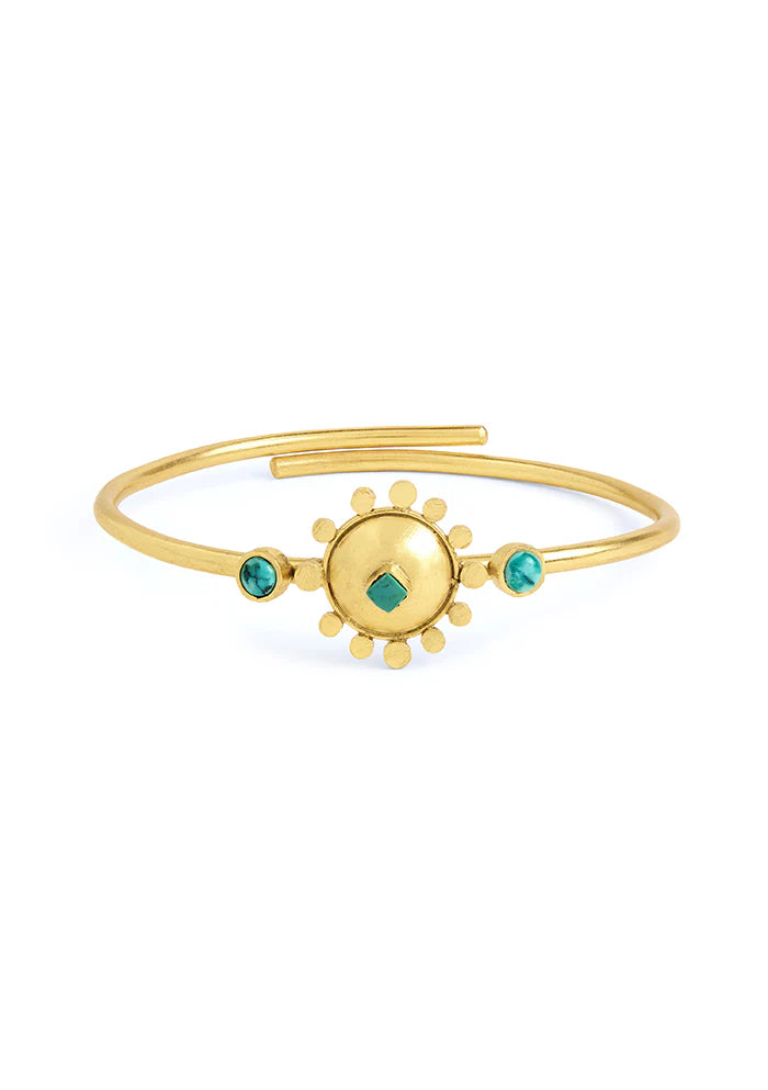This Handcrafted  Bracelet Features A Sleek Dome Design, With A Hand-Cut Turquoise Stone At Its Center. Each Piece Is A Tribute To The Rich Artistry Of Nepali Craftsmanship, Merging Modern Design With Centuries-Old Traditions. The Adjustable Band Ensures Comfort While Maintaining The Bracelet’S Refined, Minimalist Look.