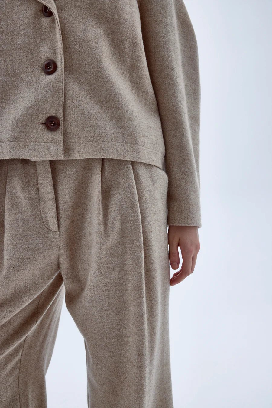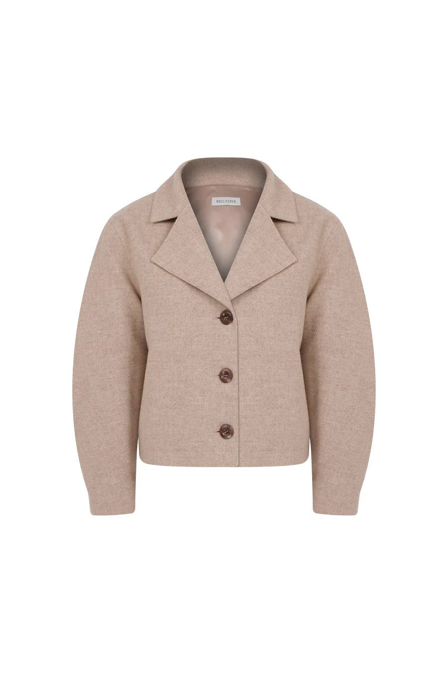 Kai Jacket is made from wool in beige, it features slightly exaggerated and curved shoulders.