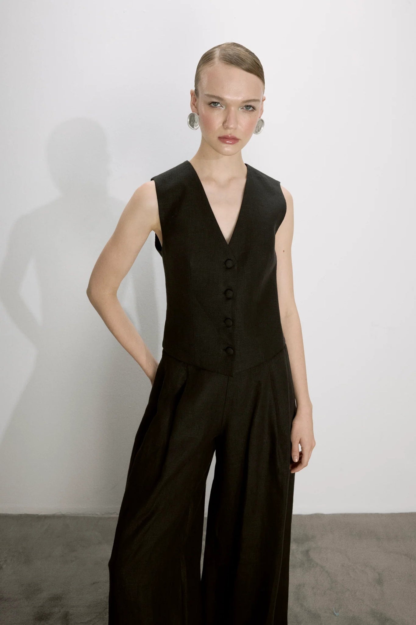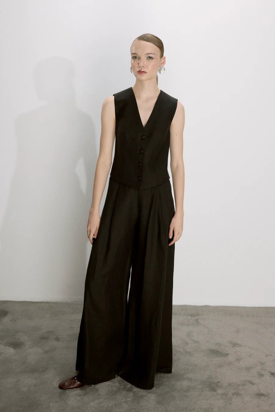 The Brita Vest is expertly crafted from lightweight linen, designed for a fitted silhouette that enhances your shape. Perfect for summer, this versatile piece exudes a powerful look.