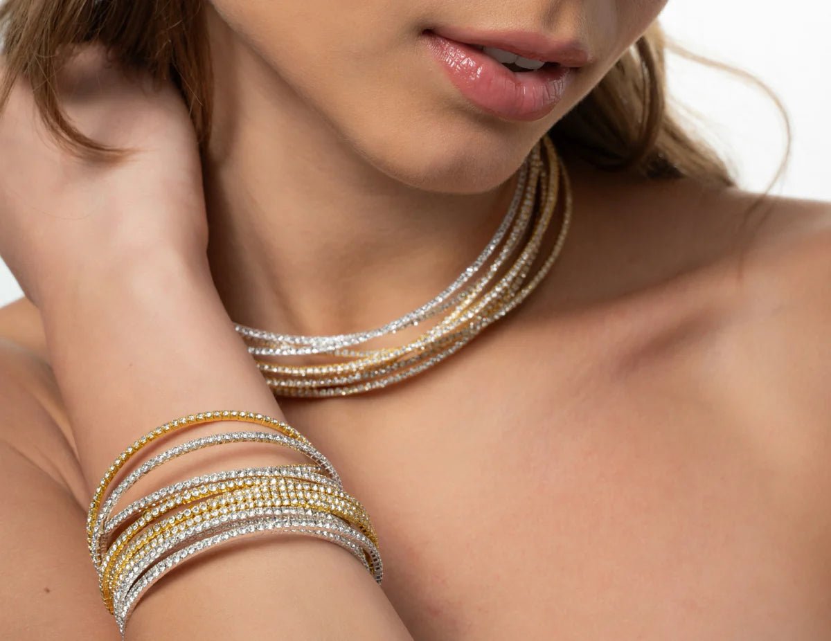 This choker will become a signature piece of your jewellery collection. Designed to effortlessly and delicately sit on your neck, it will add a luminescent sparkle that enhances that inner light in you.