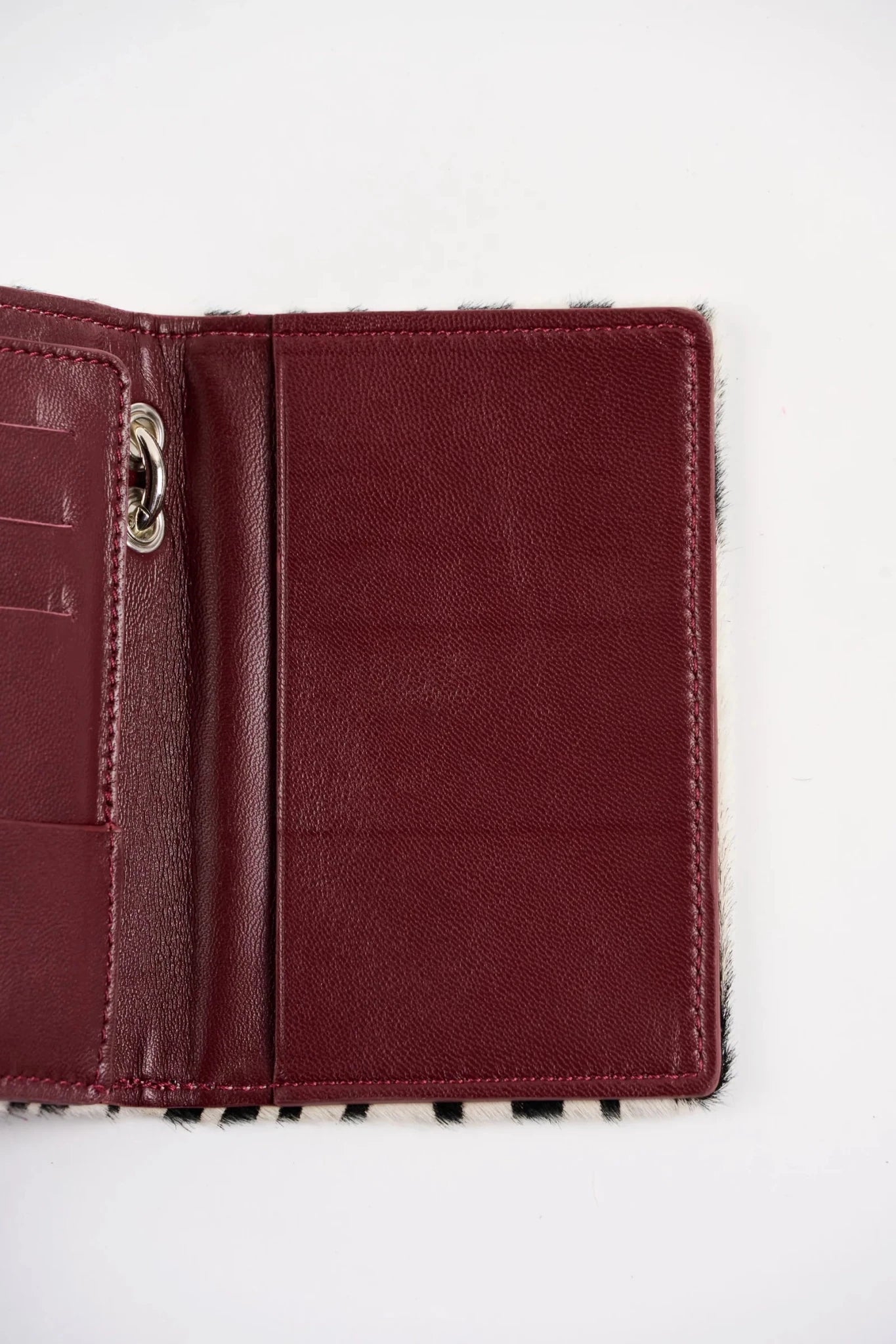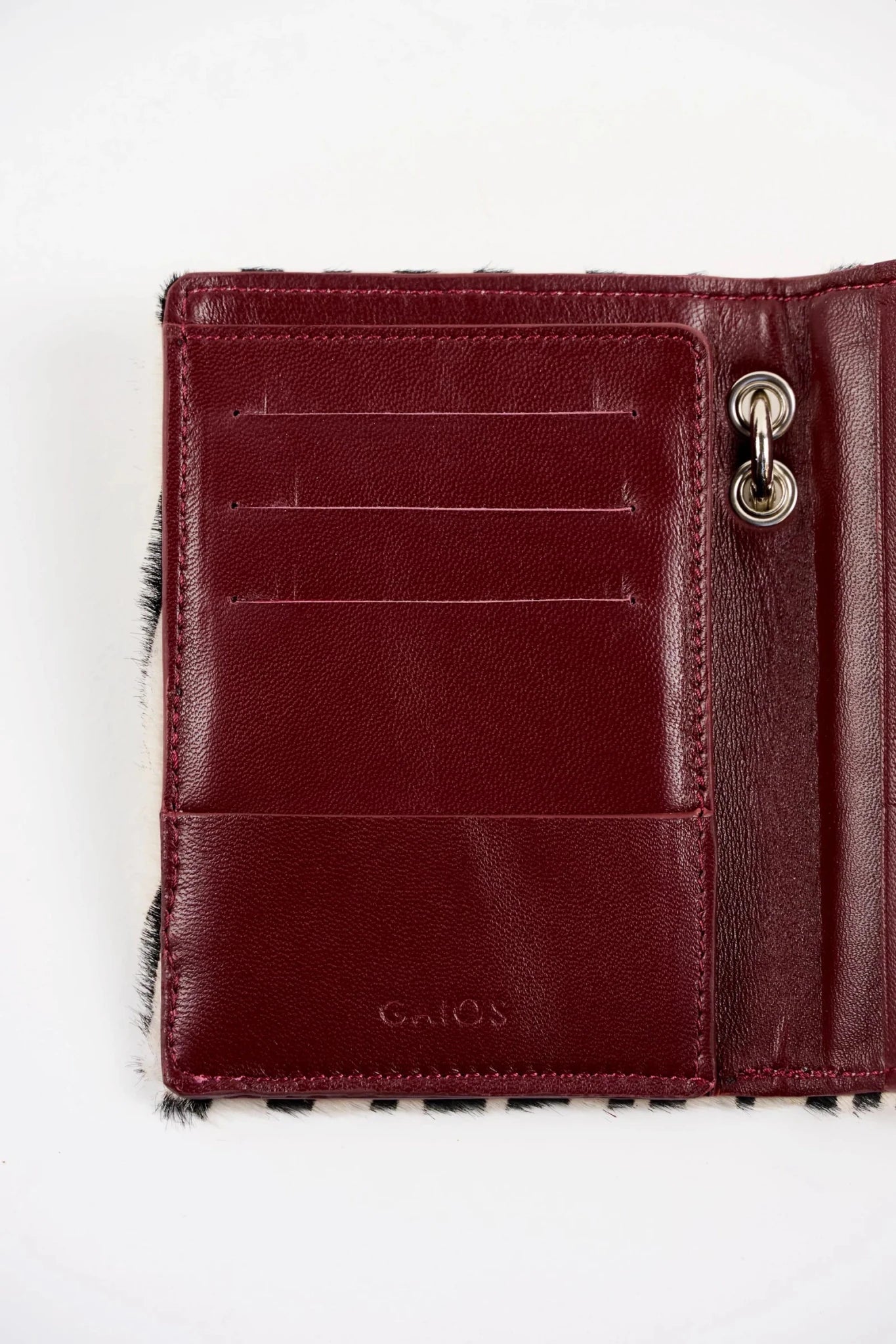 - It is made of smooth, burgundy leather on the inside, covered in fur.