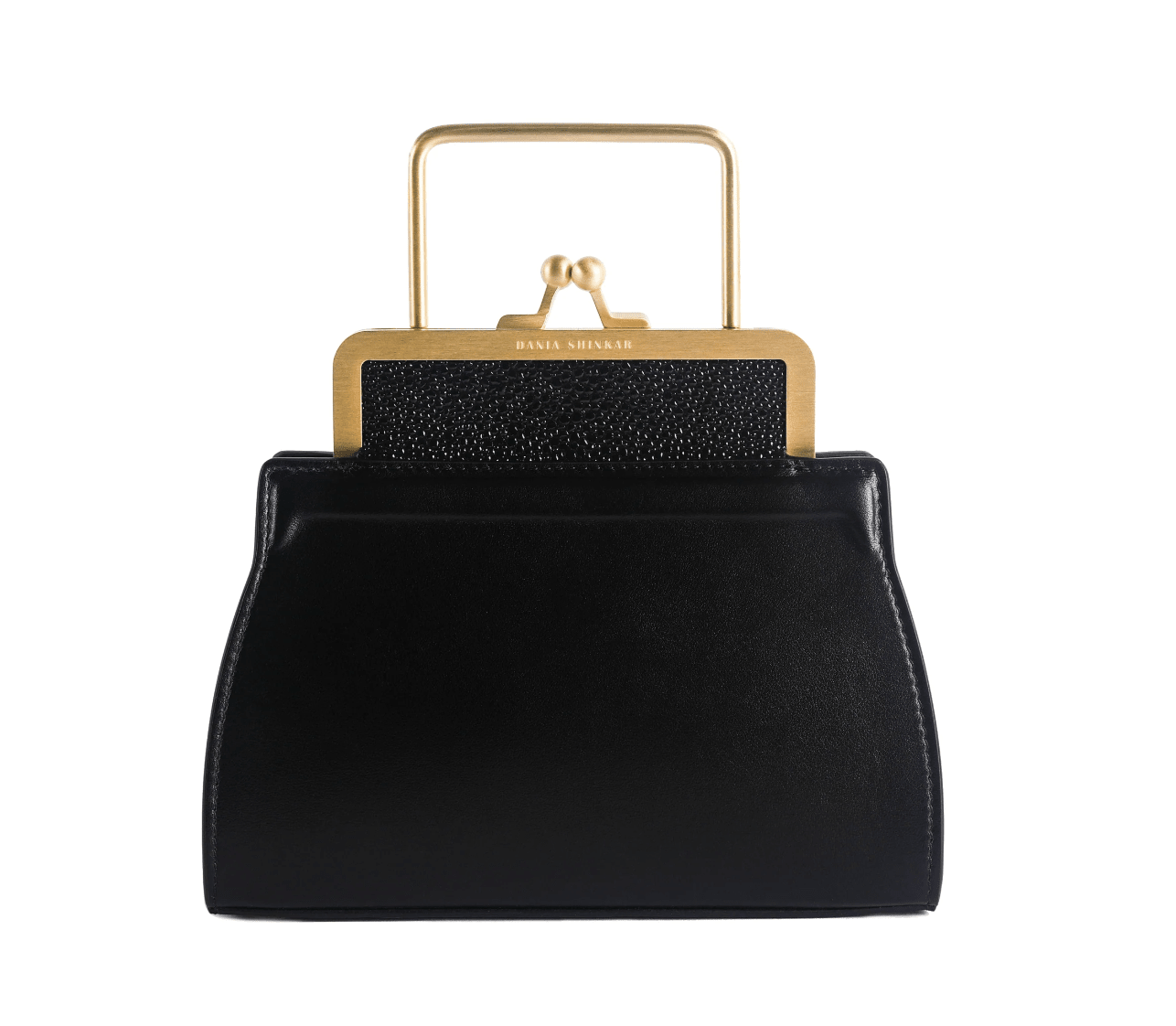 Our best-selling ‘Mini Dana’ is back — this time with its materials reversed. In this refreshed variant, the skins have been switched: the stingray-embossed calfskin now defines the top, while smooth black nappa grounds the base. The result is the same iconic design you love, seen through a new lens of texture and proportion.