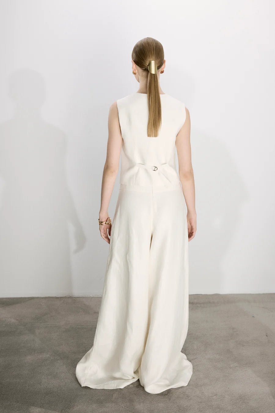 The Brita Vest is expertly crafted from lightweight linen, designed for a fitted silhouette that enhances your shape. Perfect for summer, this versatile piece exudes a powerful look.
