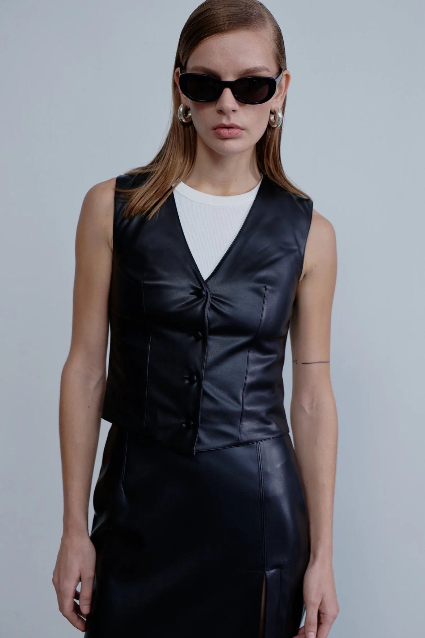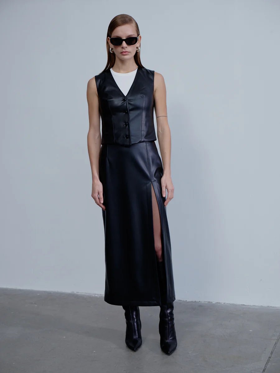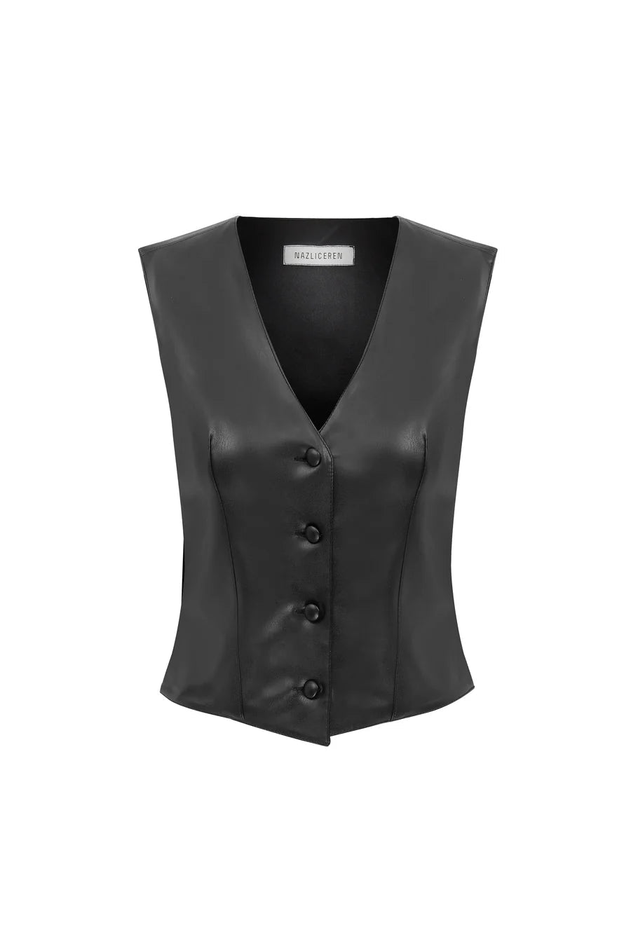 Nazlı Ceren takes cues from androgynous suiting to create this cotton twill Brita vest with an adjustable back strap.