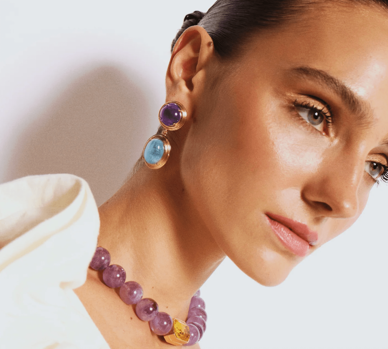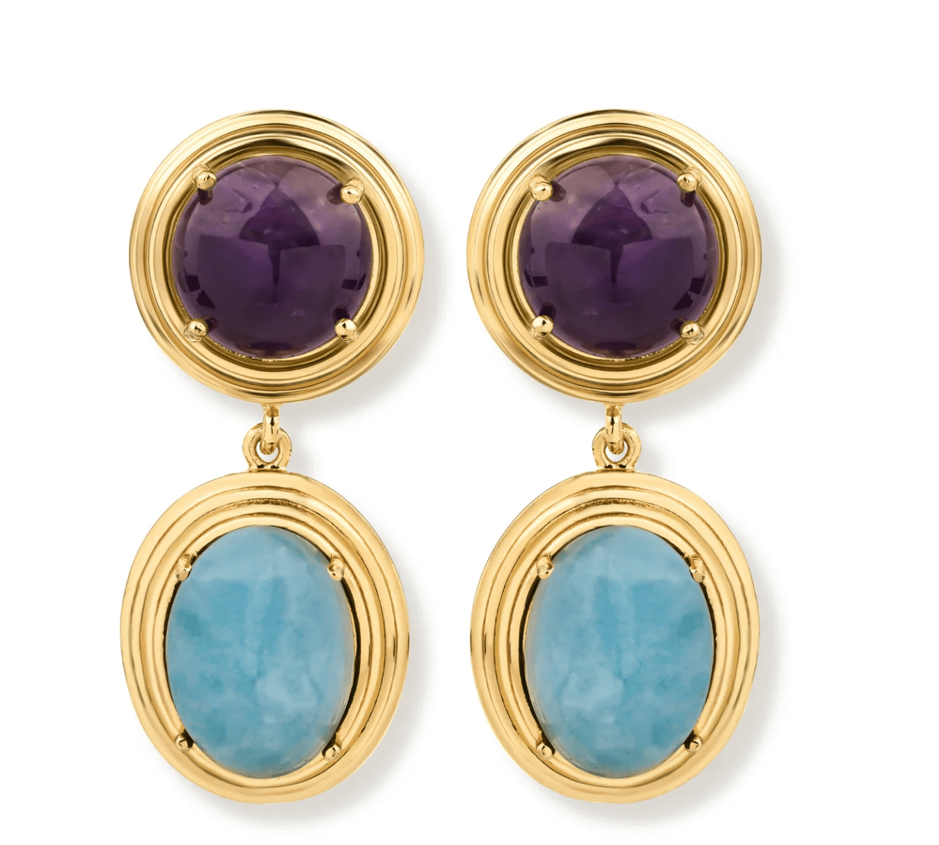 Ninon Knidos Amethyst Aquamarine Embellished Earrings