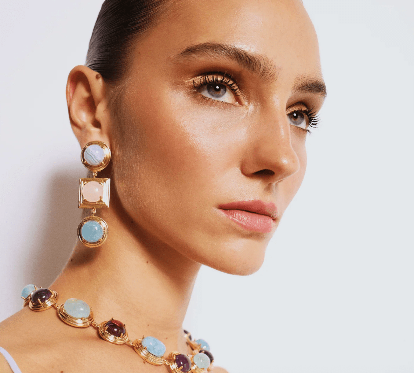 Ninon Lykia Blue Lace Agate Pink Quartz Aquamarine Embellished Earrings