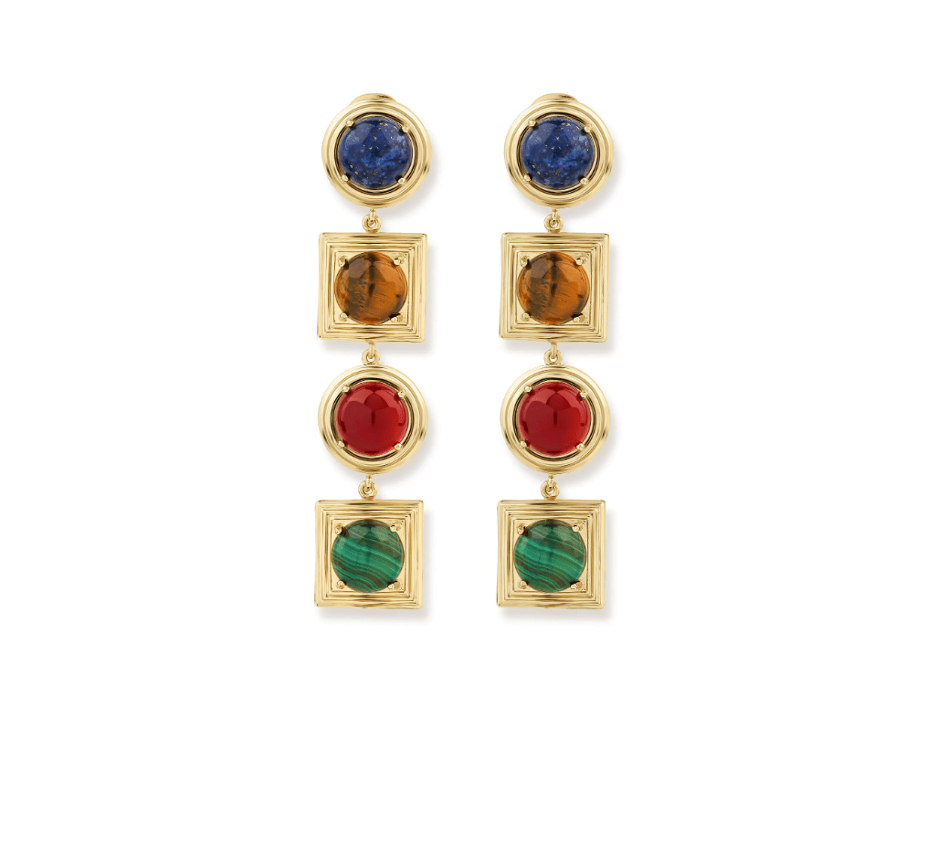Ninon Lykia Lapis Tigereye Carnelian Malachite Embellished Long Earrings