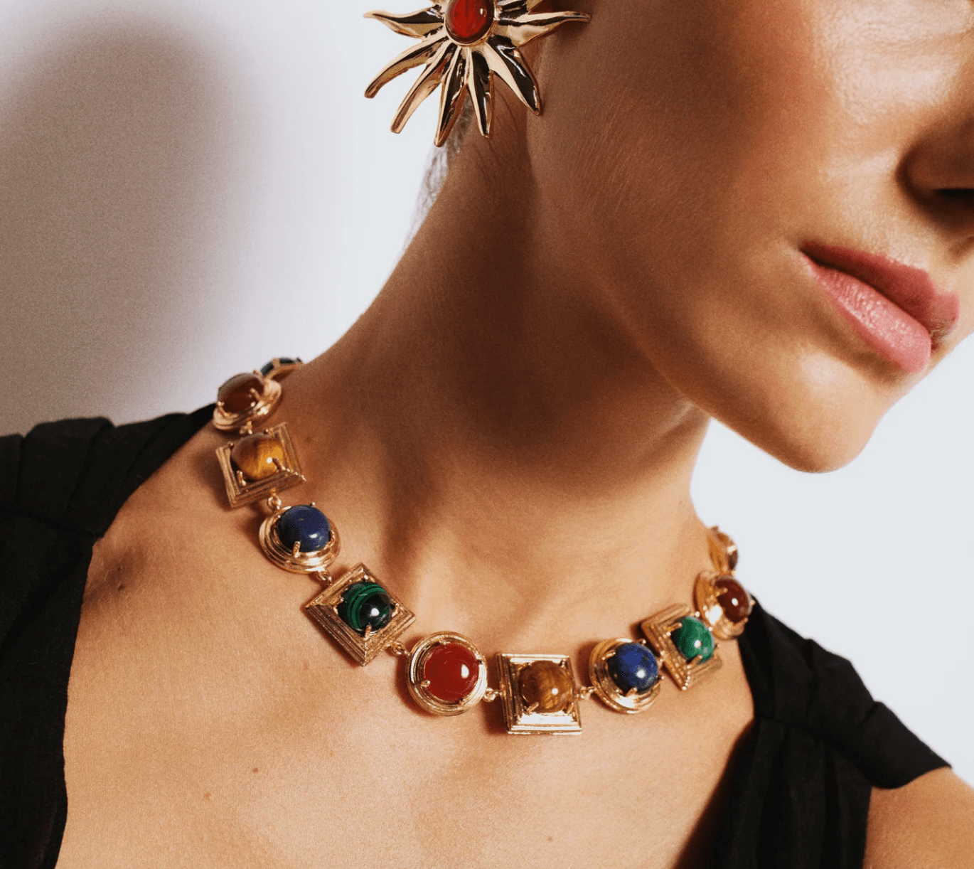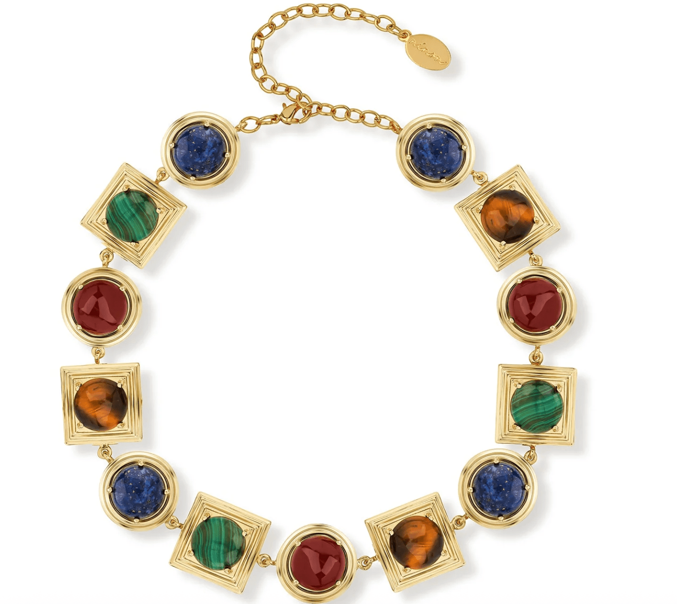 Ninon Lykia Lapis Tigereye Carnelian Malachite Embellished Necklace