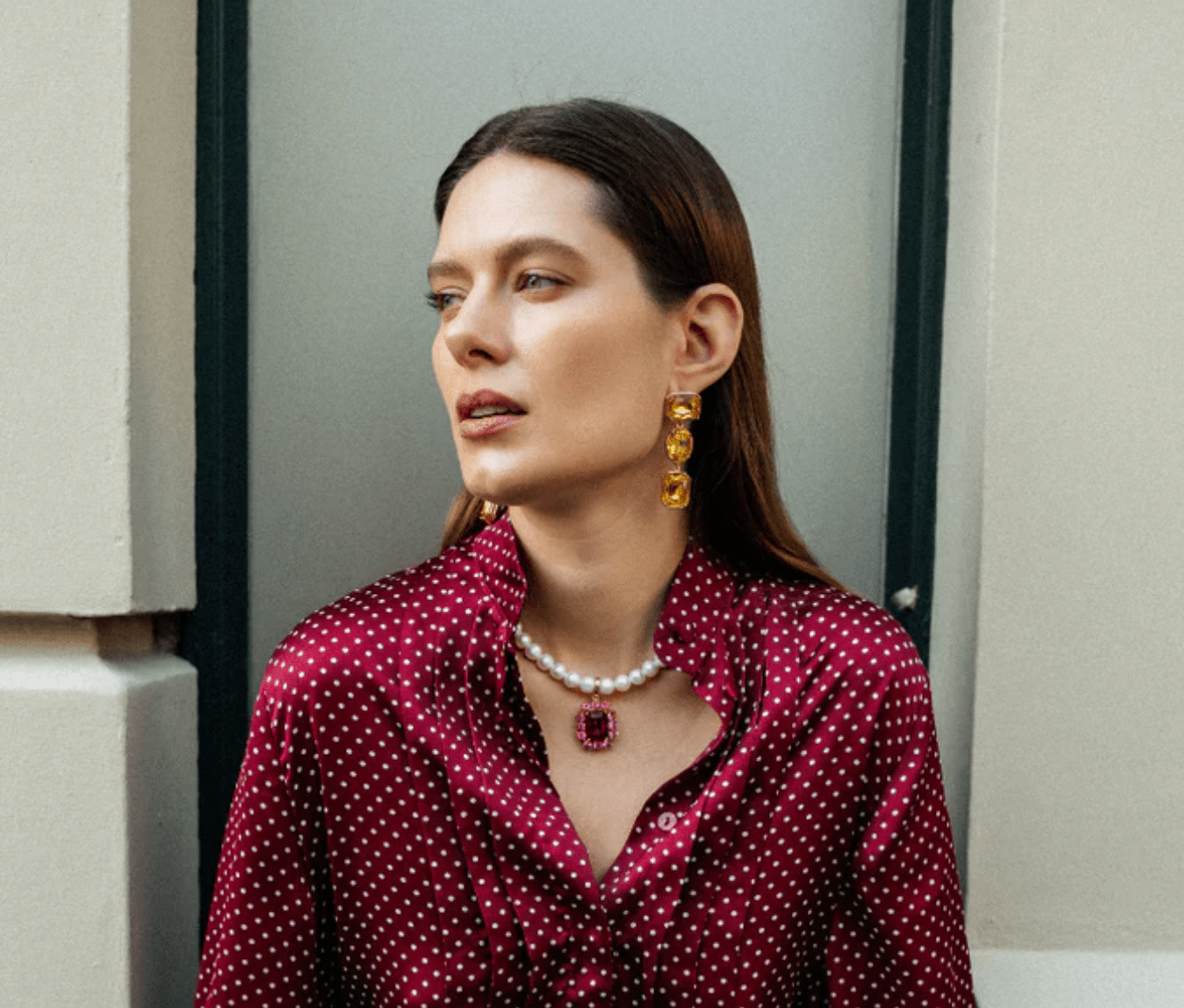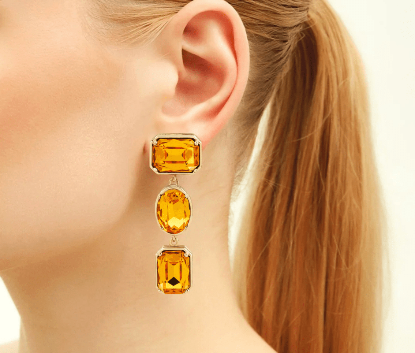 Ninon Melodia Duo Yellow Crystal Embellished Drop Earrings