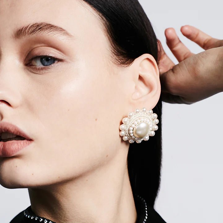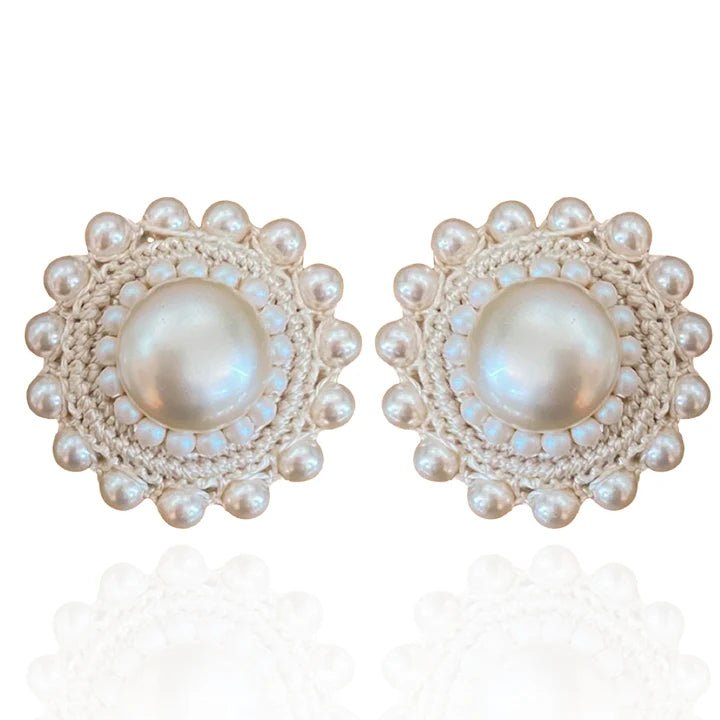 The pretty and sweet Pearl Studs are a more subtle pair, again full of personality and texture. The elegance and sophistication of pearls are enhanced with the beauty of fine crochet work.