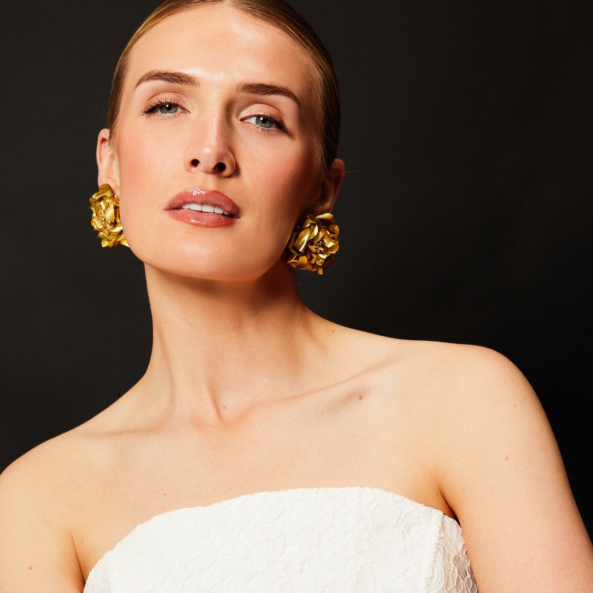 Gold Camellia Studs