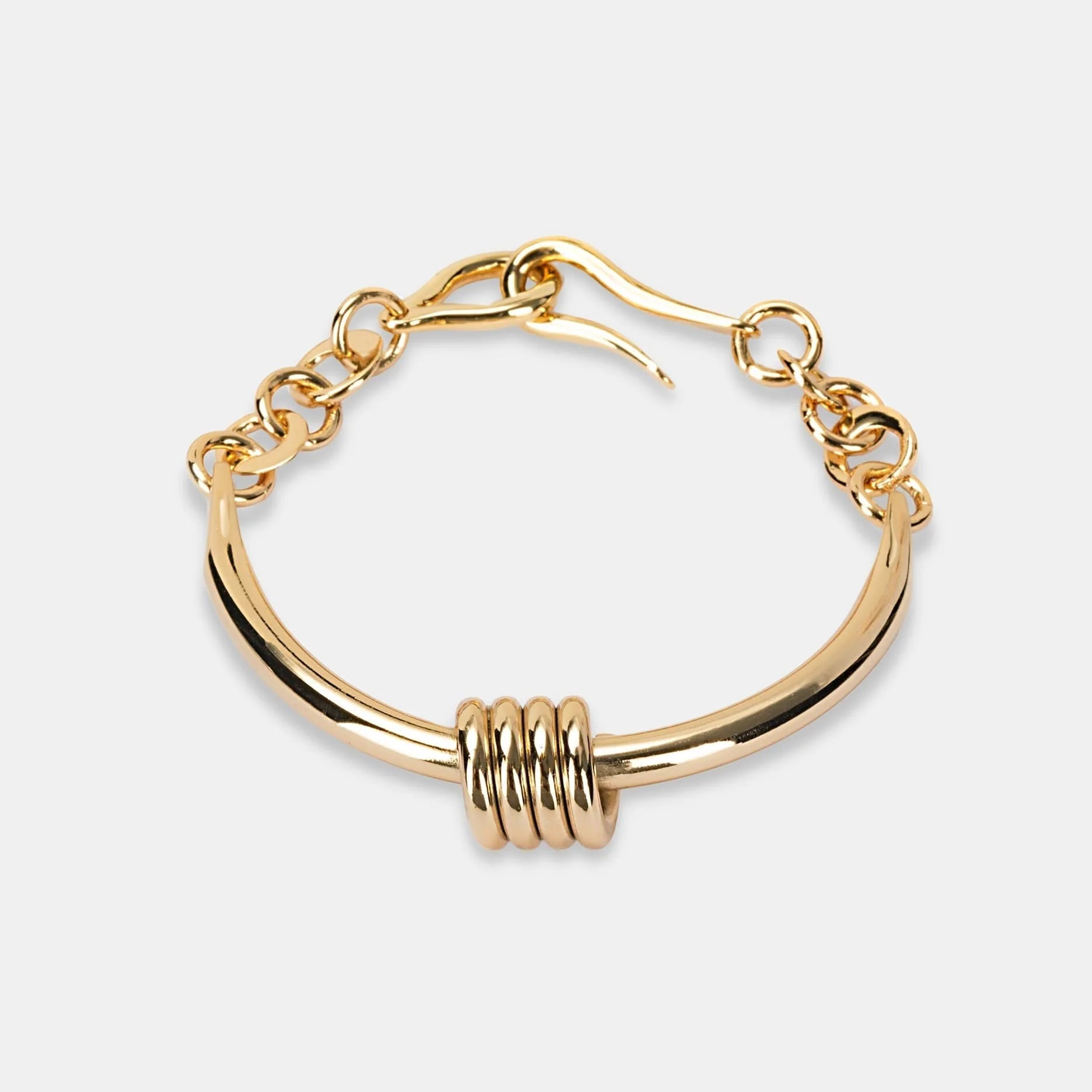 24k gold plated brass bracelet. A natural leather cord runs through the pieces and ties into knots. Our products are nickel and lead free. Our designs are fully handcrafted by experienced local artisans in our Istanbul Ateliers. Made using traditional craft techniques.Please give this piece 2-3 weeks to ship.