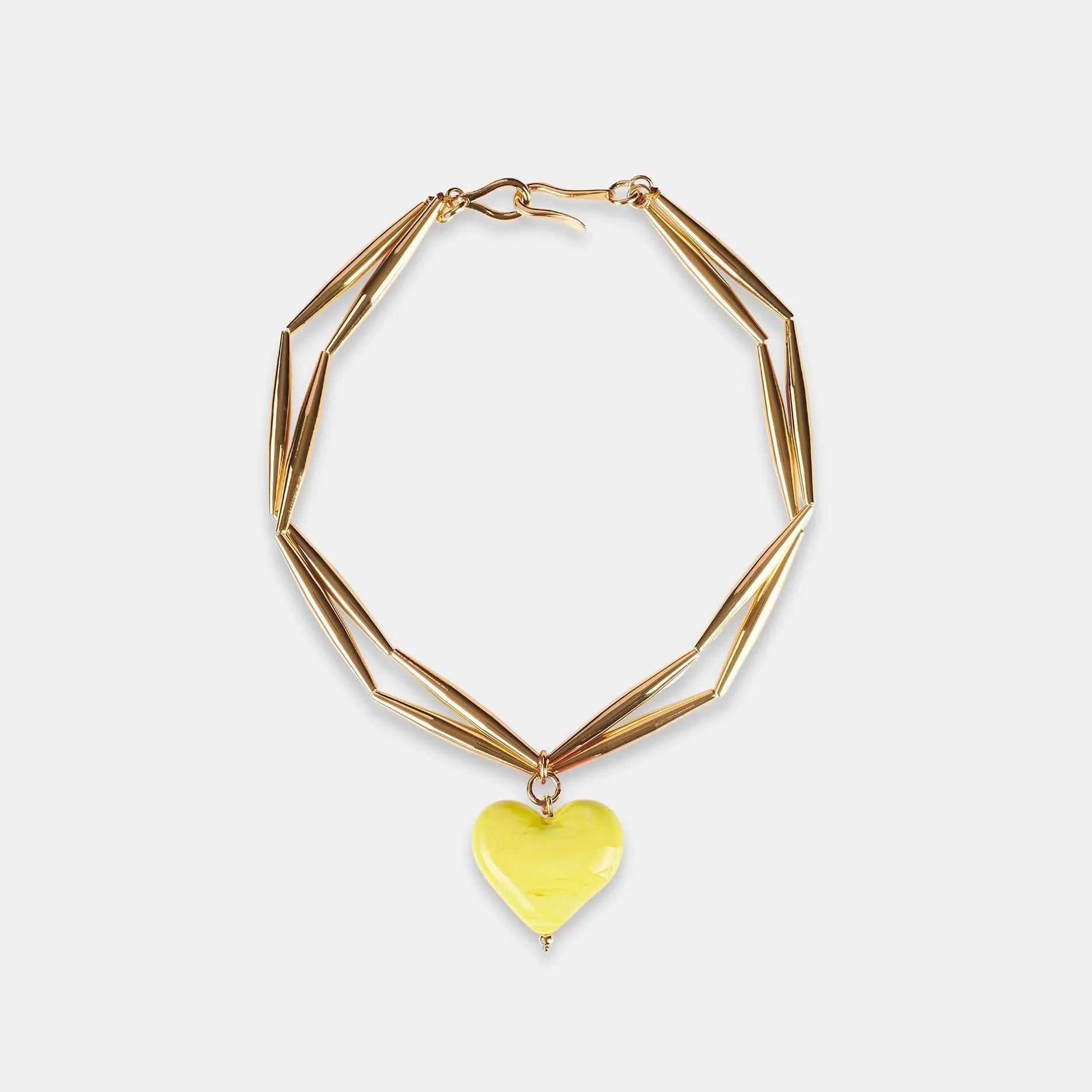 24k gold plated brass small pendant necklace with cream, glittered blown glass heart. Each blown glass is unique and your order may be in a different size and a slightly different shade than the image 30% of the net profit from the sale of this design is donated to The Haller Foundation to support their sustainable farming projects in Africa. Please click here to read more about tohum x haller collaboration. Our products are nickel and lead free. Our designs are fully handcrafted by experienced local artisans in our Istanbul Ateliers.