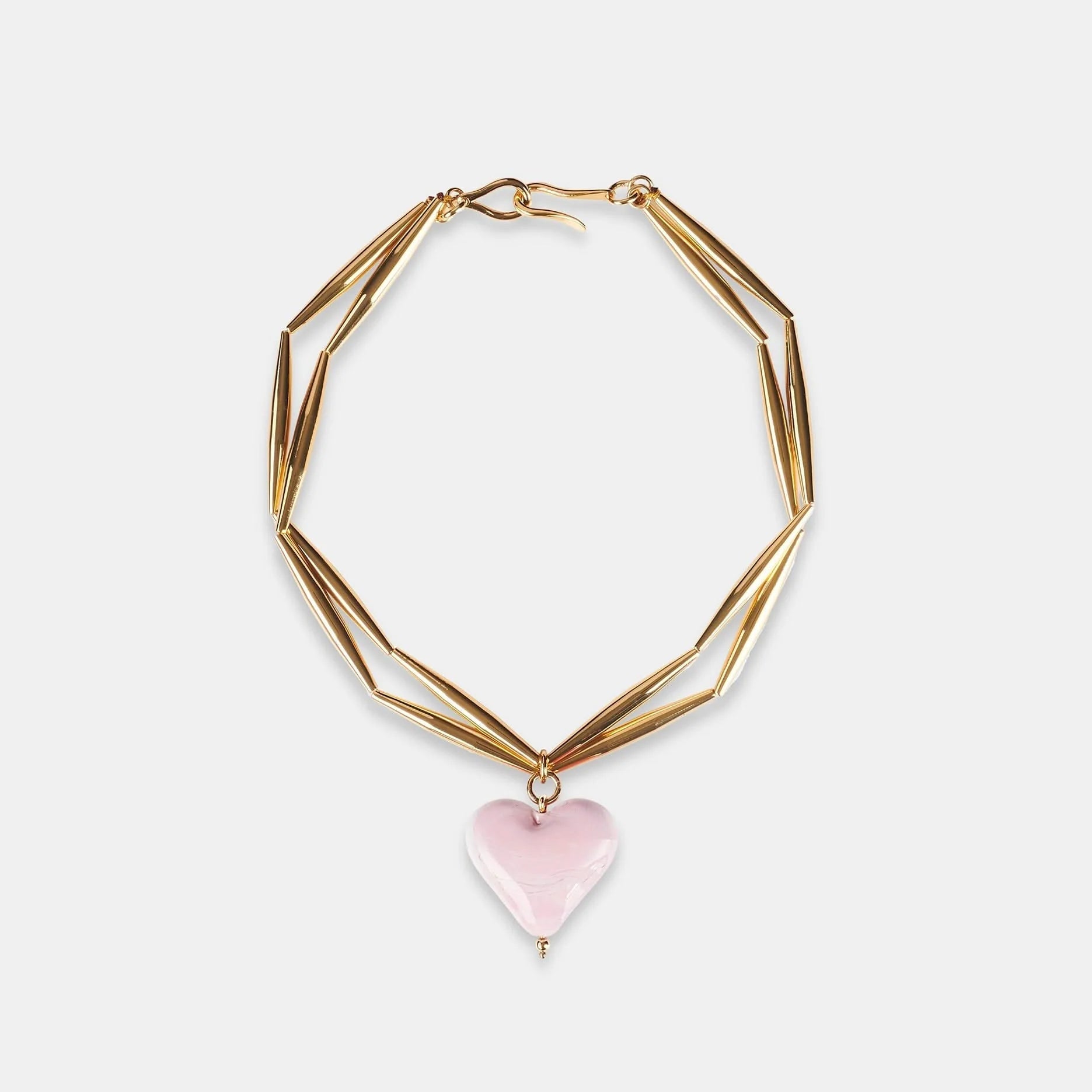 24k gold plated brass small pendant necklace with cream, glittered blown glass heart. Each blown glass is unique and your order may be in a different size and a slightly different shade than the image 30% of the net profit from the sale of this design is donated to The Haller Foundation to support their sustainable farming projects in Africa. Please click here to read more about tohum x haller collaboration. Our products are nickel and lead free. Our designs are fully handcrafted by experienced local artisans in our Istanbul Ateliers.
