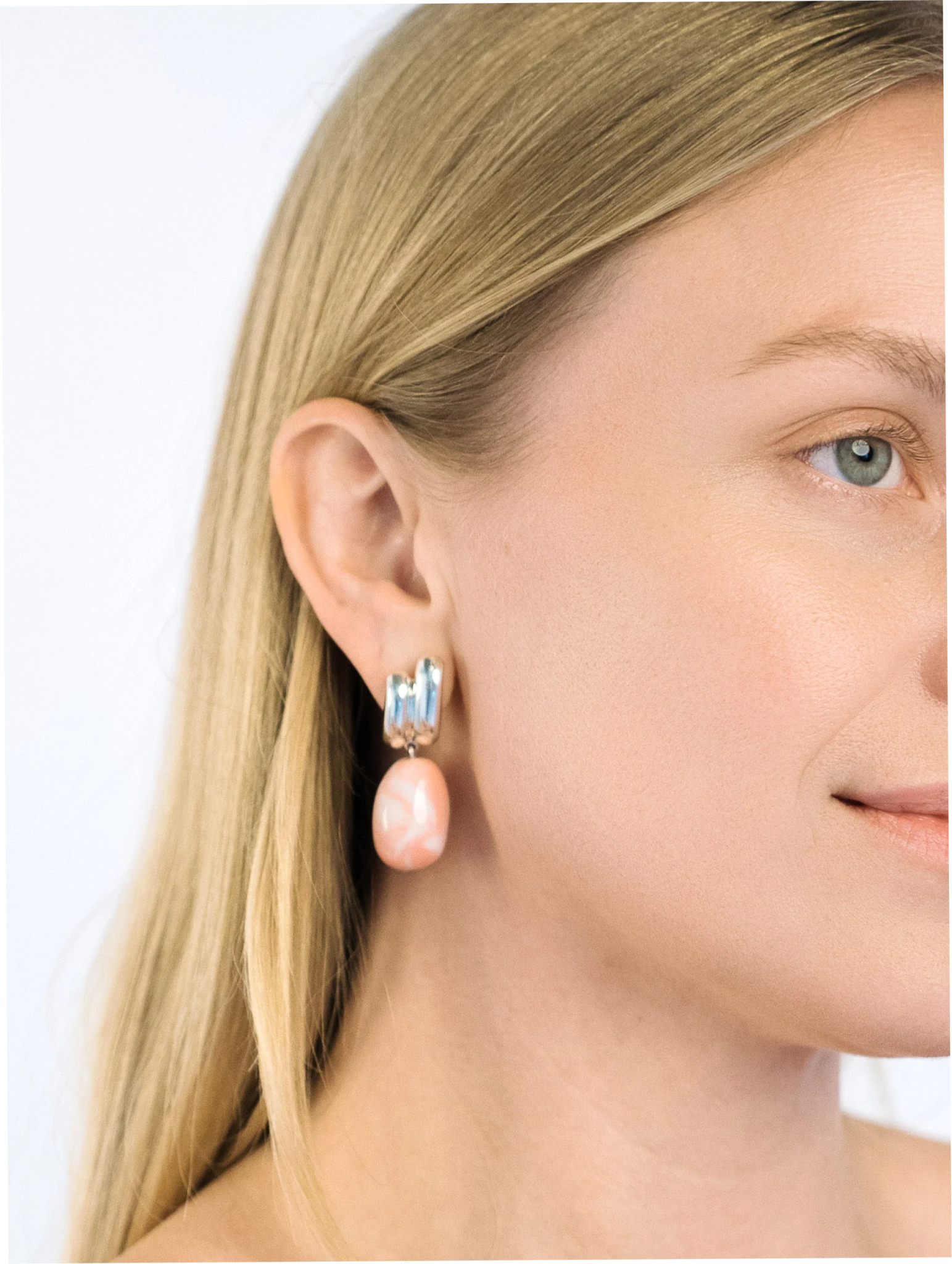 For this pair, we’ve crafted light pink beads with white inserts.