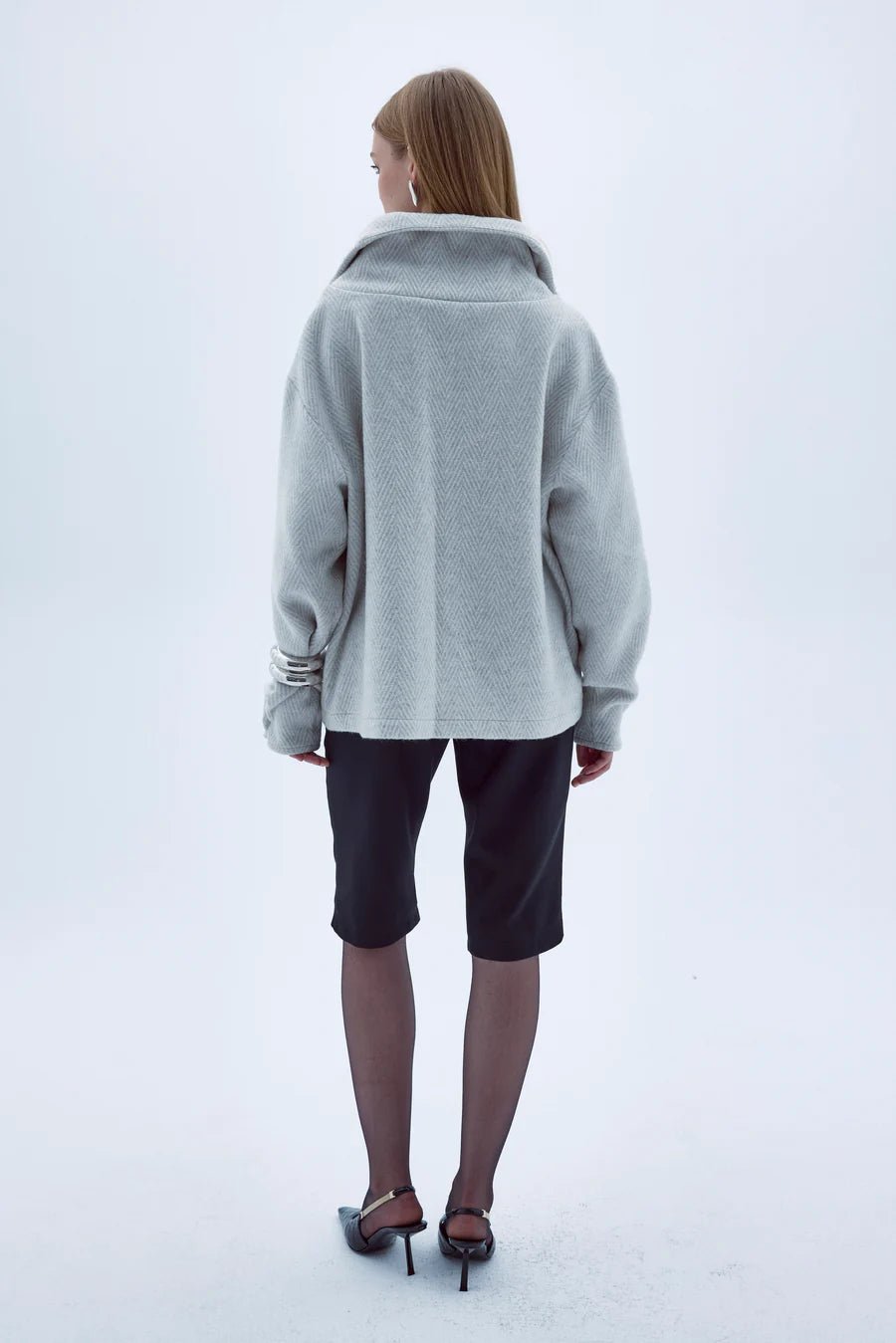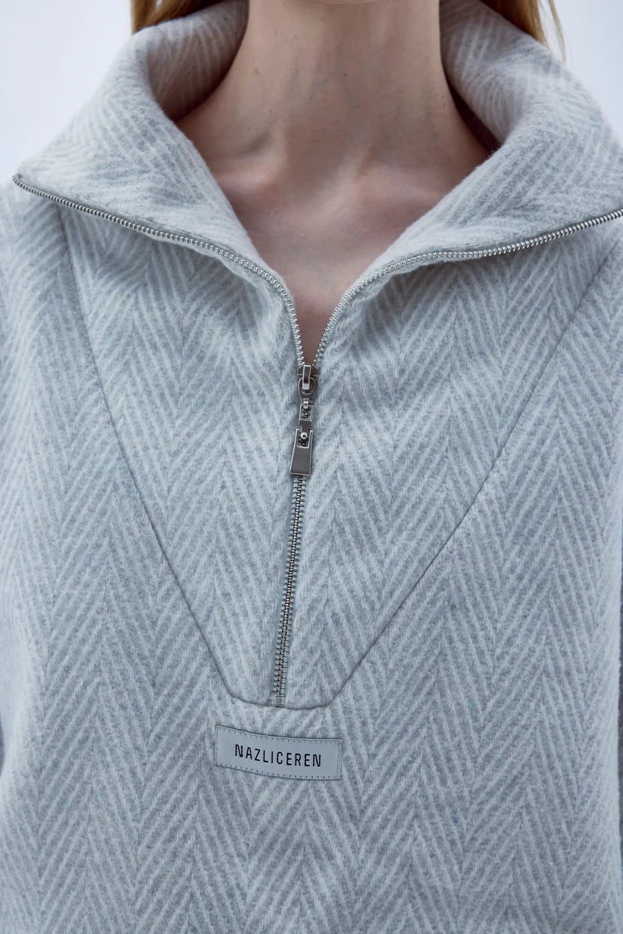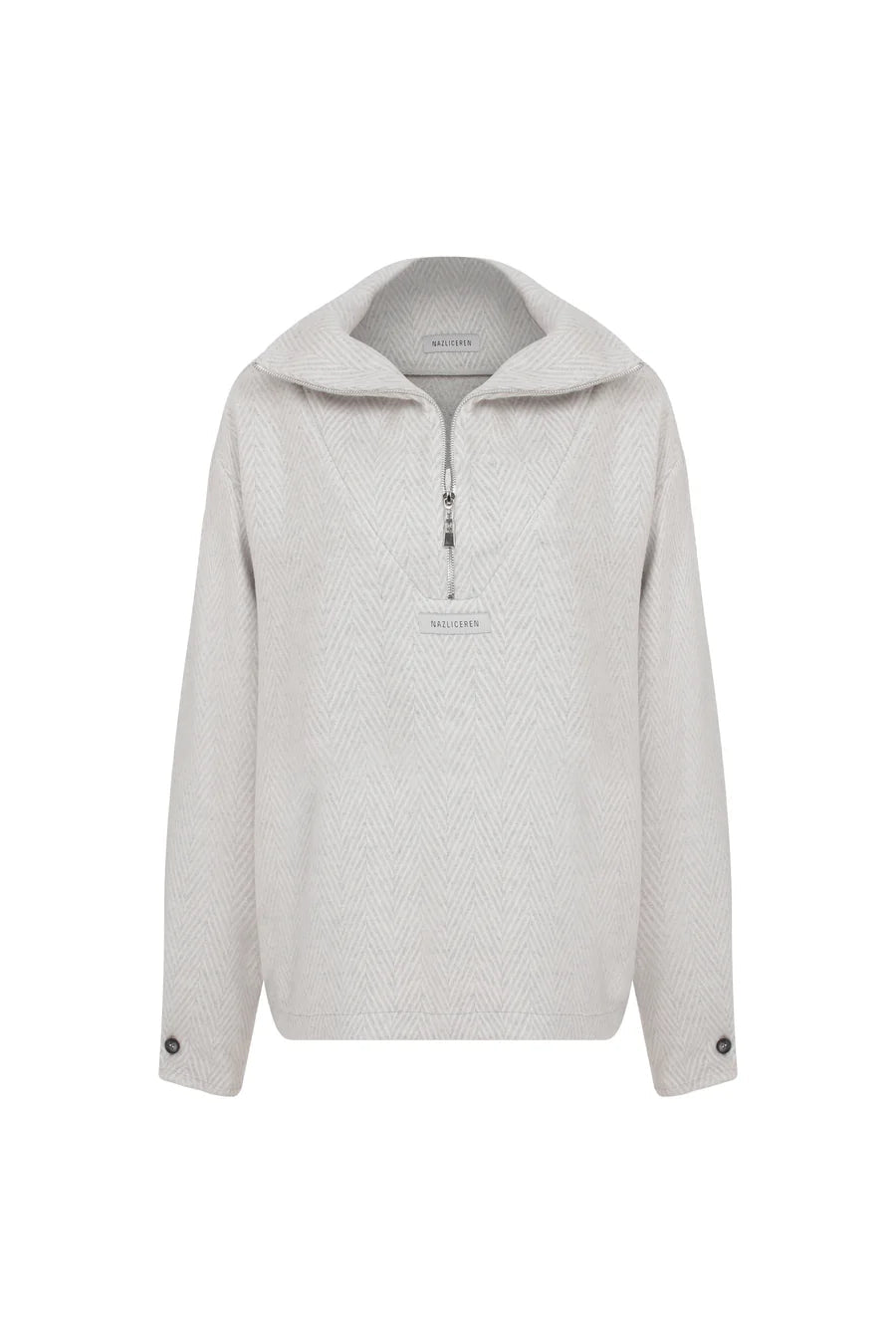 Nazlı Ceren’s Travis jumper is made from mid-weight knit wool, shaped with a generous zipped high neck and slouchy dropped shoulders with buttons on hems.
